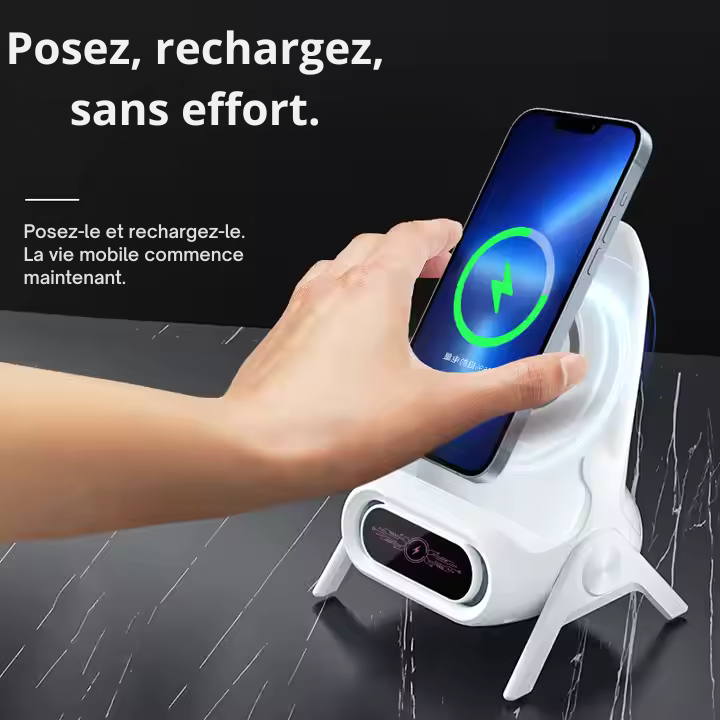 Offrez à votre téléphone une pause bien méritée. Ce chargeur sans fil unique en forme de mini‑chaise combine design moderne, technologie rapide et confort visuel. Il transforme chaque recharge en un instant zen et stylé.
